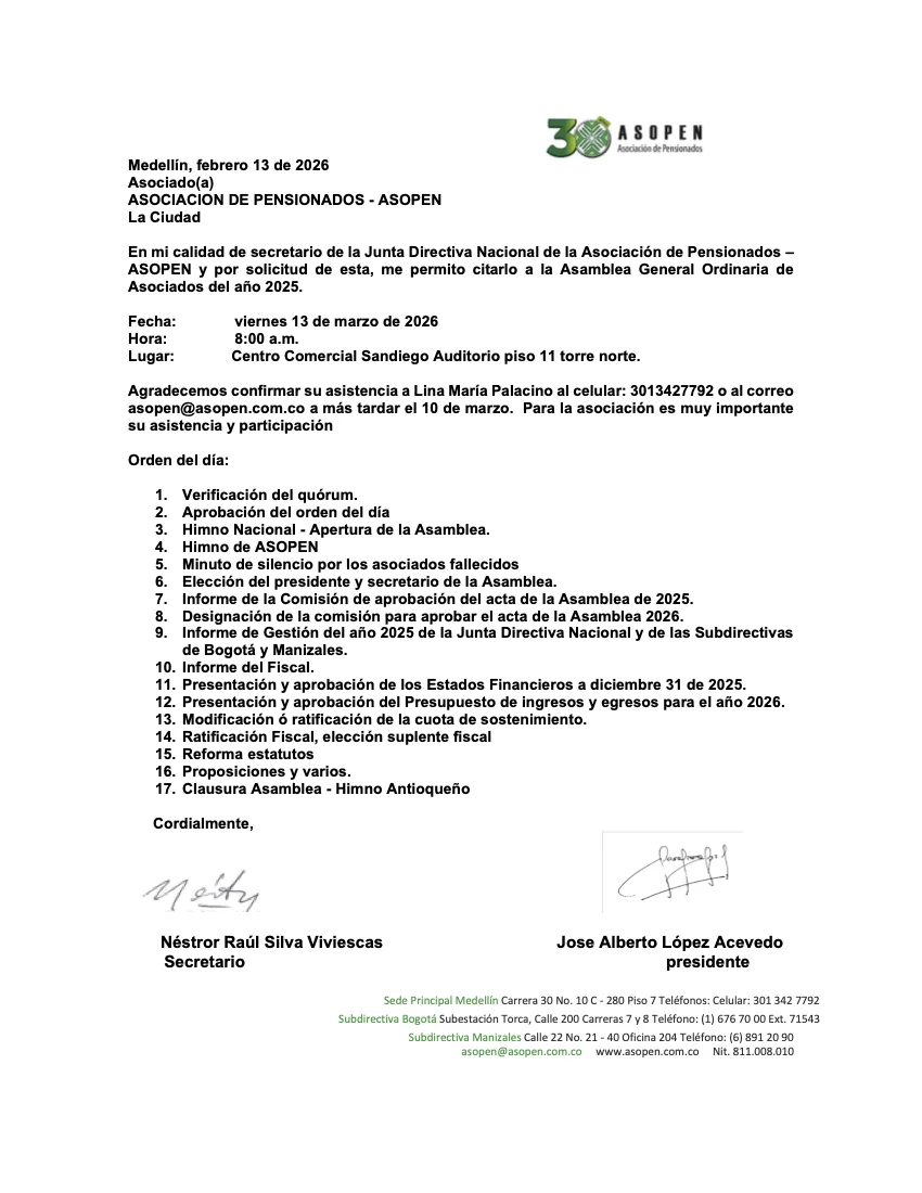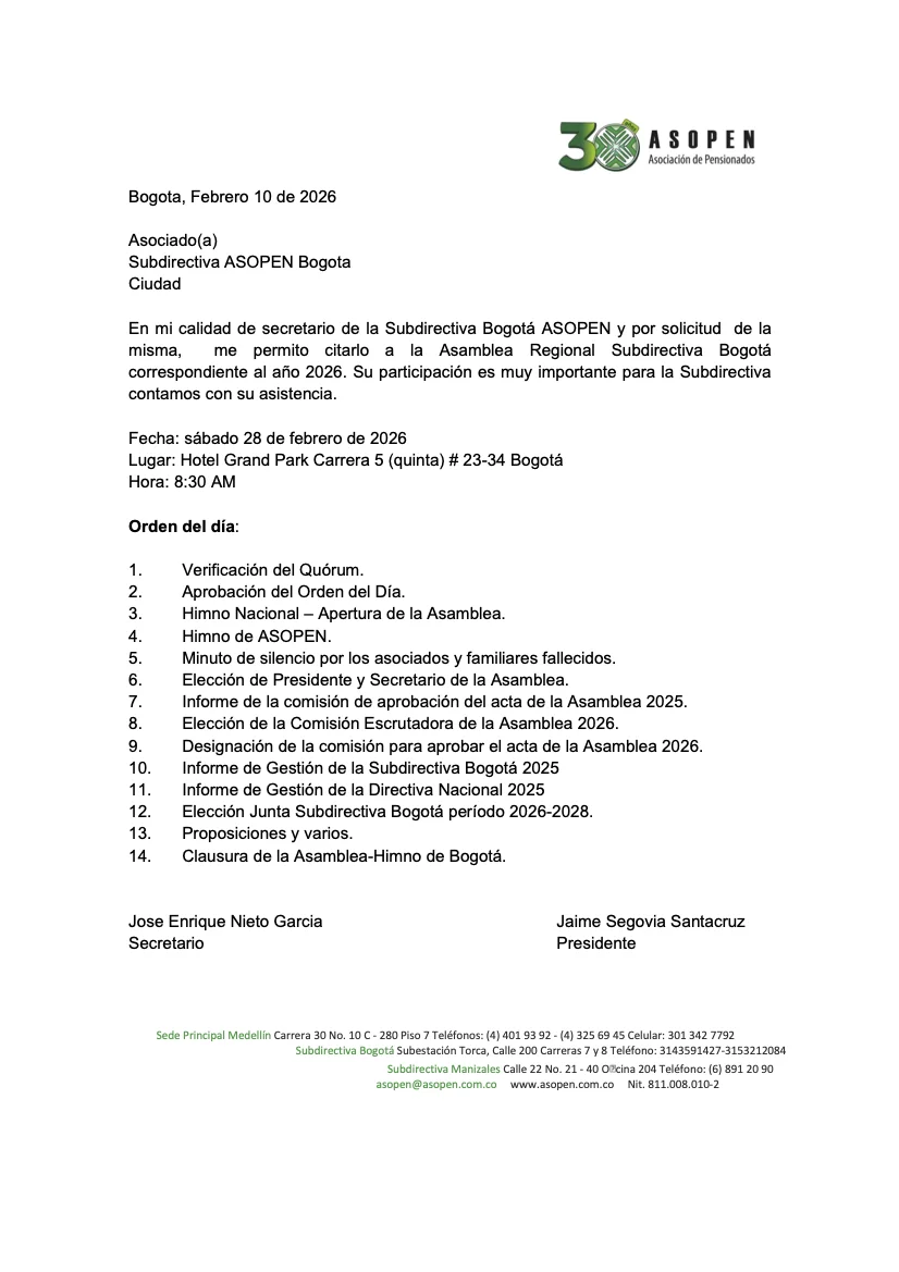 ASOPEN – Asociación de Pensionados, es el “Segundo Hogar”, en el cual los asociados continuamos unidos con nuestros compañeros de trabajo de toda la vida para seguir disfrutando la amistad, ayudarnos mutuamente en esta nueva etapa como pensionados, mejorando nuestra calidad de vida y defendiendo los derechos adquiridos.